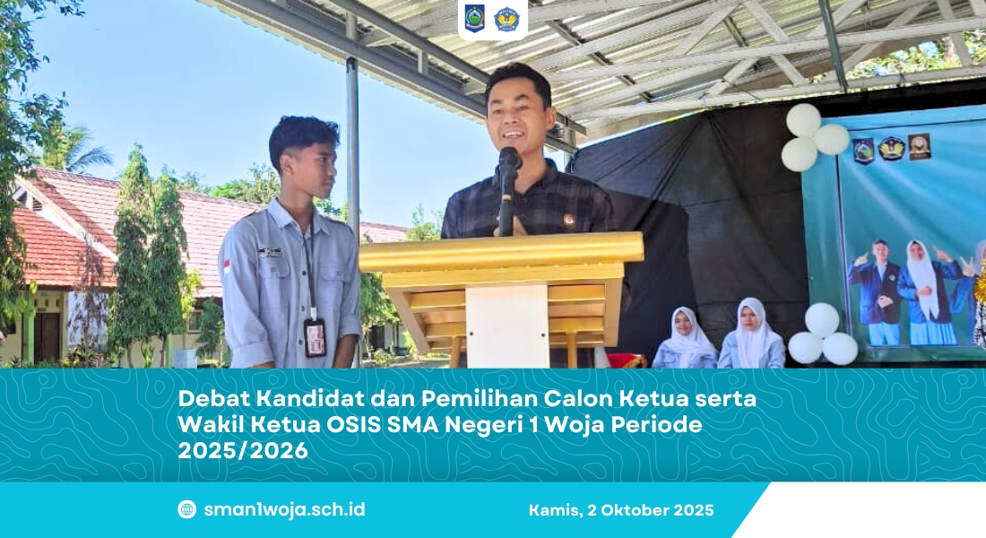 Pada hari Kamis, 2 Oktober 2025, SMA Negeri 1 Woja menyelenggarakan kegiatan Debat Kandidat dan Pemilihan Calon Ketua serta Calon Wakil Ketua OSIS periode 2025/2026. Kegiatan ini berlangsung di lingkungan sekolah dan diikuti oleh Bapak/Ibu guru, staf karyawan, seluruh peserta didik, serta turut dihadiri oleh perwakilan dari Komisi Pemilihan Umum (KPU) Kabupaten Dompu.